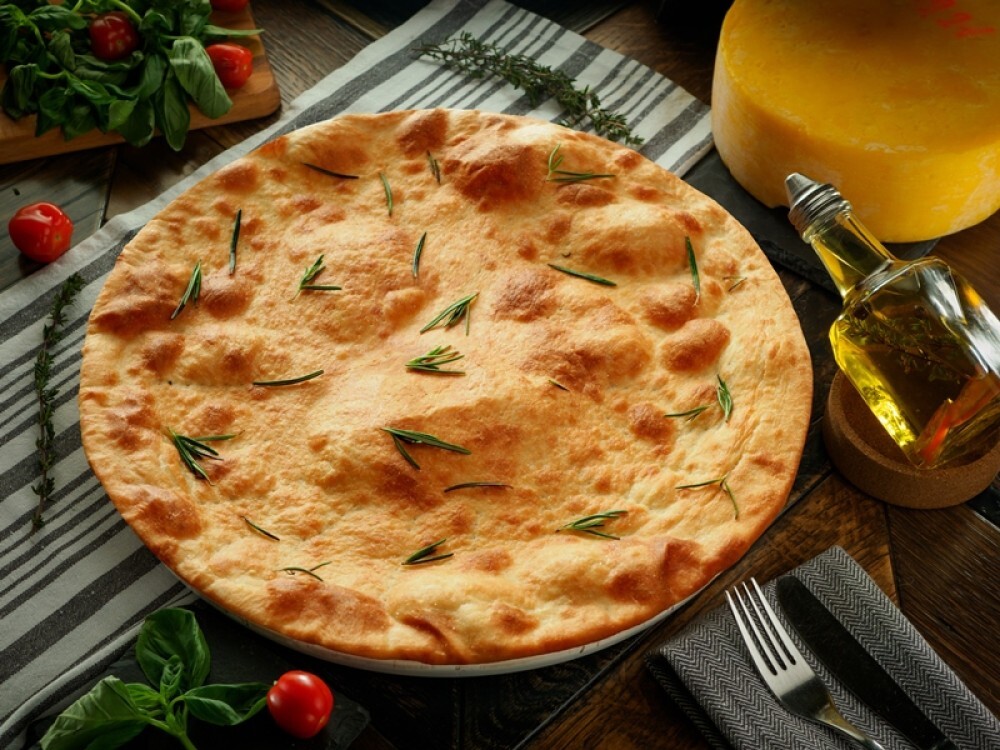 Состав: пшеничная лепешка с чесноком, розмарином и оливковым маслом.