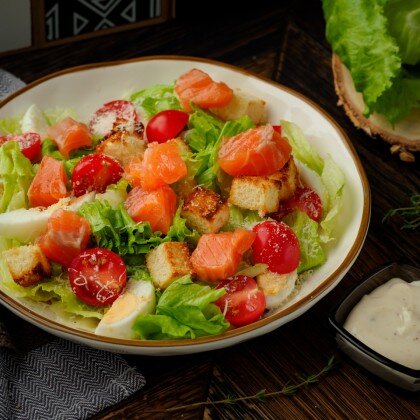 Салат "Цезарь" со слабосолёной сёмгой