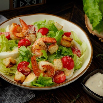 Салат "Цезарь" с тигровыми креветками