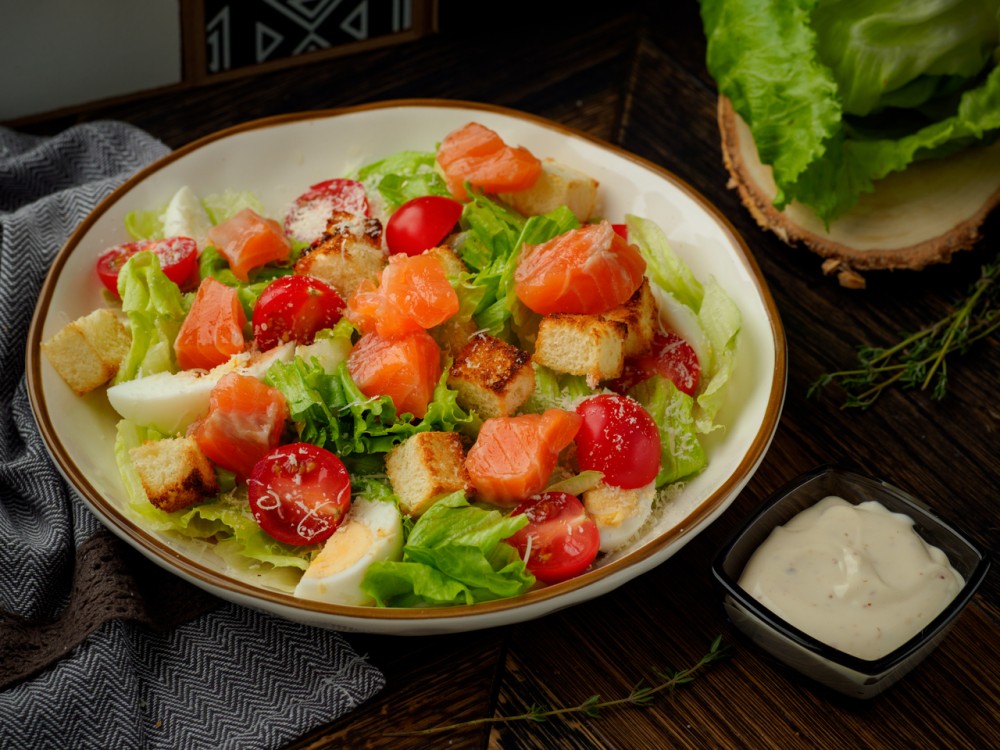 Салат "Цезарь" со слабосолёной сёмгой