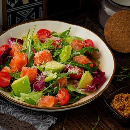 Салат "Цезарь" со слабосолёной сёмгой