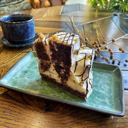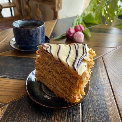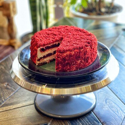 Выпекаем сами. Масляная бисквитная крошка, крем - сливочный сыр, сливки, сахар.