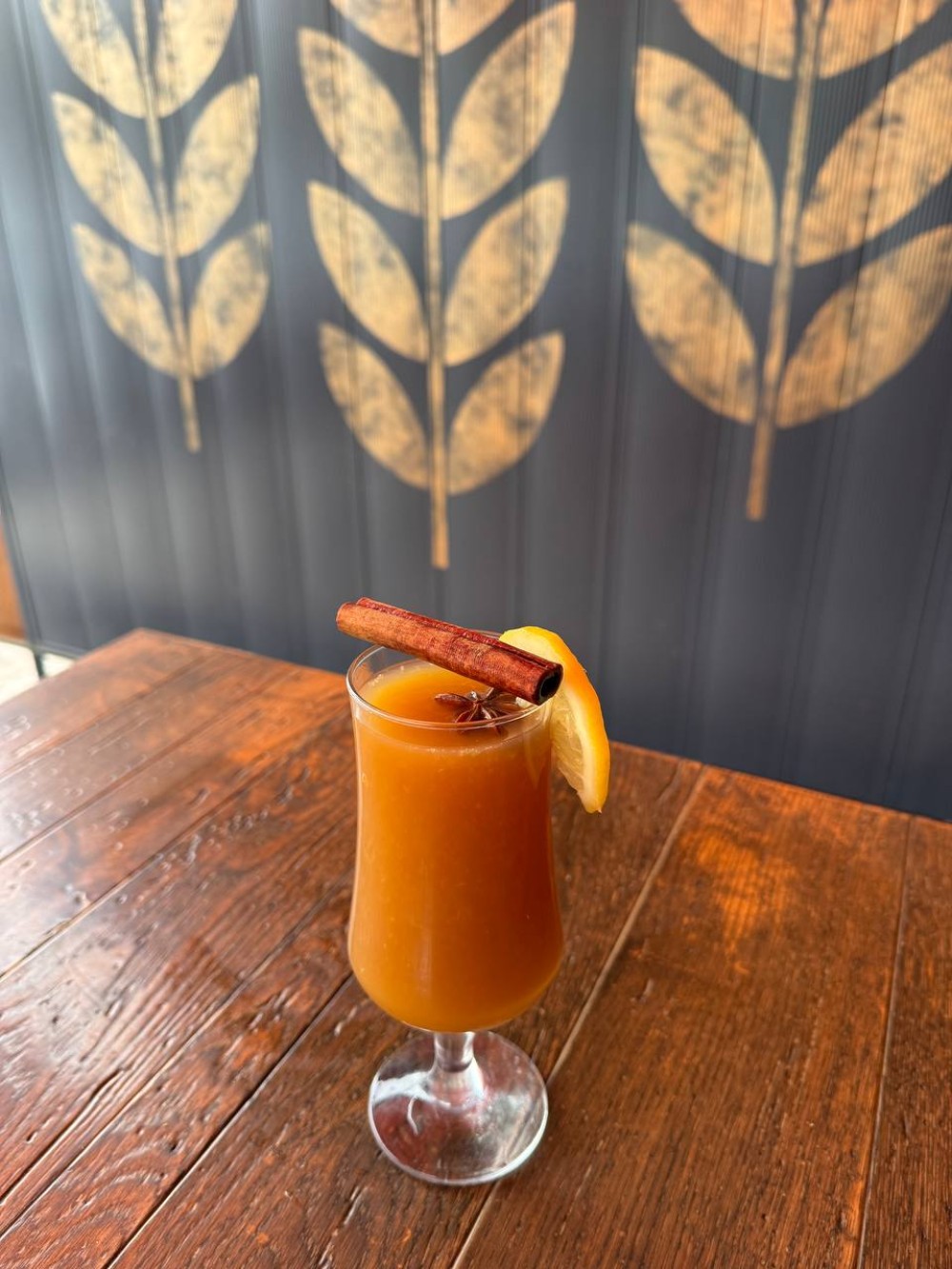 Черный чай, апельсиновый сок, сироп коньячный, имбирь, лимон, корица, бадьяп